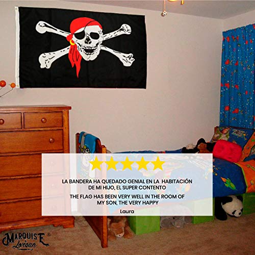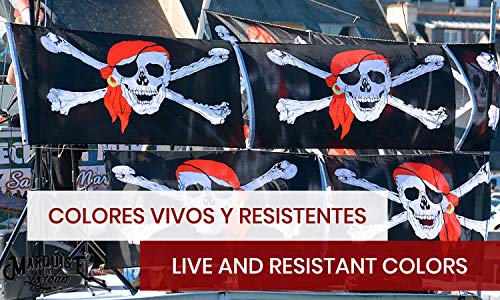 - ATENCIÓN MAMÁS Y PAPÁS Este es el Complemento Ideal al Disfraz de Piratas: Si has decidido regalar, disfrazarte tú o a tus hijos de piratas, no les puede faltar esta Bandera. Es el Complemento Ideal. No compres a los Chinos cuando una Empresa Española crea Banderas de tan Buena Calidad. ☝️ Nuestras banderas cuentan con protección contra los rayos UV y los colores permanecen vivos durante más tiempo.