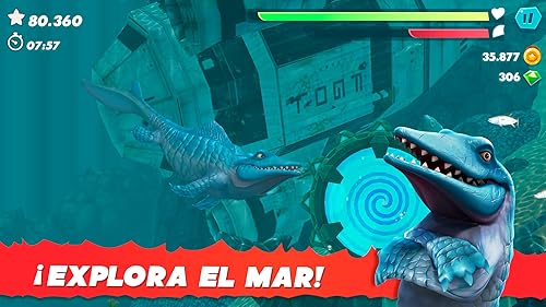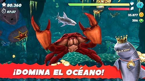 - Avanza por los niveles para desbloquear a las bestias más feroces del mar: al tiburón mako, al tiburón martillo, al tiburón tigre y al todopoderoso tiburón blanco.