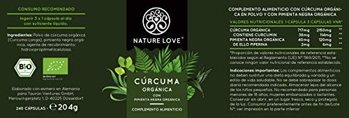 NATURE LOVE® Cúrcuma orgánica cápsulas - 2150 mg por dosis diaria. 240...
