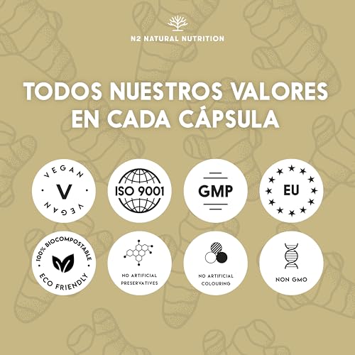 - ⚡POTENTE ANTIINFLAMATORIO NATURAL, ANTIOXIDANTE, DIGESTIVO Y DETOX: El Suplemento Natural de Cúrcuma Piperina de N2 Natural Nutrition es un Potente Antiinflamatorio Natural, puede ser beneficioso para el Hígado por sus Propiedades Hepatoprotectoras, ayudando a Eliminar Toxinas del cuerpo y puede beneficiar al tracto gastrointestinal.