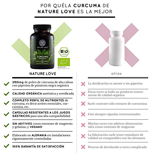 - GARANTÍA DE SATISFACCIÓN. En Nature Love nos hemos comprometido con los nutrientes naturales. Si no está satisfecho, puede devolver el producto dentro del primer año y ¡recuperar su dinero de inmediato! Llévese ahora su cúrcuma natural con tan sólo unos pocos clics.
