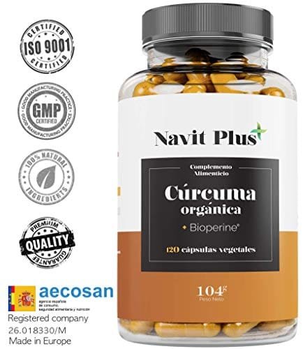 - EXCELENTE RELACION PRECIO-CALIDAD: 240 cápsulas veganas con 2390 mg/ dosis diaria (3 cápsulas), de ello 2150 mg de polvo de cúrcuma orgánica y altamente concentrada, 120 mg de pimienta negra orgánica para una mayor biodisponibilidad. No irrita el estómago: cápsulas veganas resistentes a los jugos gástricos para evitar reacciones a la cúrcuma. Nuestra cúrcuma es un producto ecológico de calidad certificada.