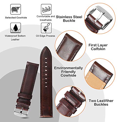 - ⌚【Cuero de vaca】Hecho de piel de becerro italiana importada.Elija un ternero de 2-3 años,Pequeños poros,Su brillo sedoso tiene un acabado mate.El cuero de relleno medio y premium proporciona la máxima transpirabilidad, comodidad y estilo.