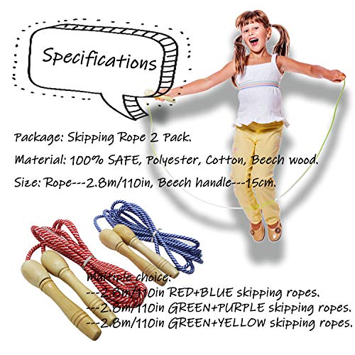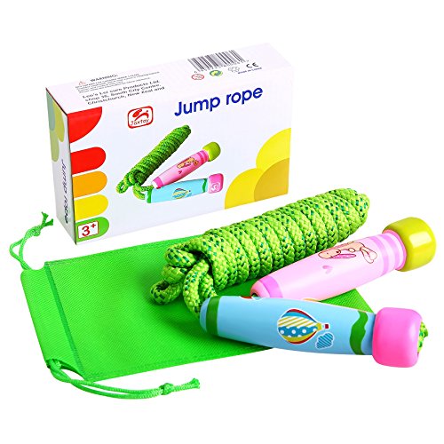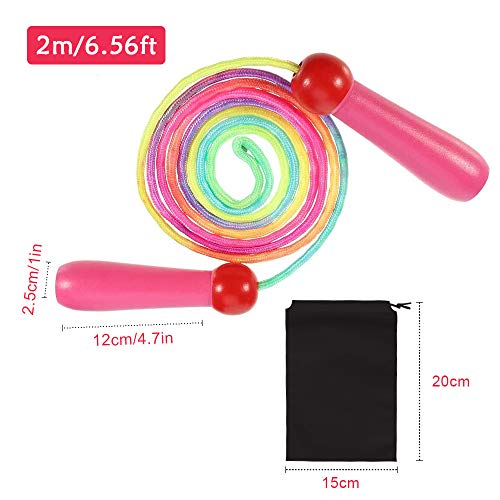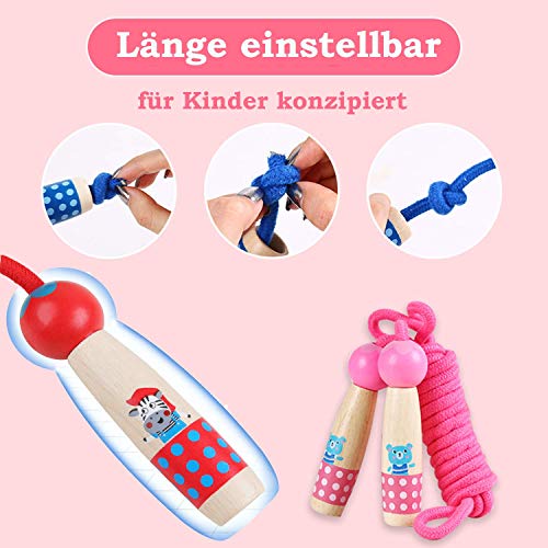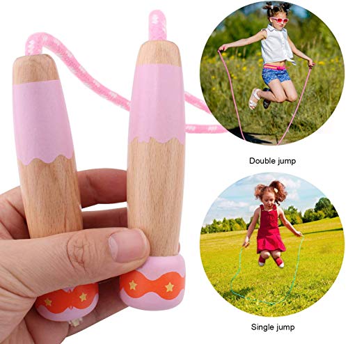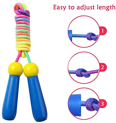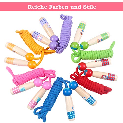 KONVINIT Cuerda para Saltar con Mango de Madera Colorido para niños Cuerda...