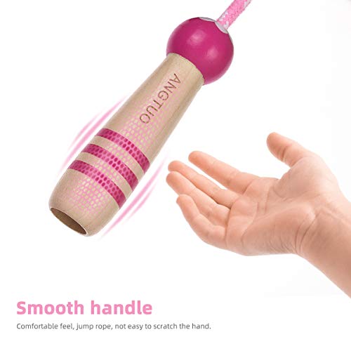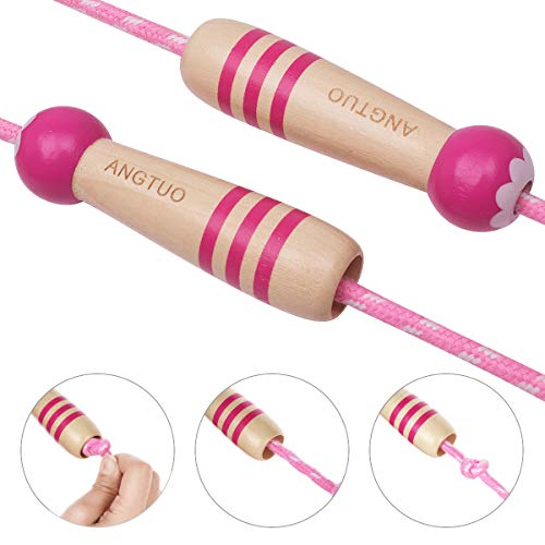 ANGTUO Skipping Rope Kids, niños ajustable Cotton Jumping Rope con mango de...