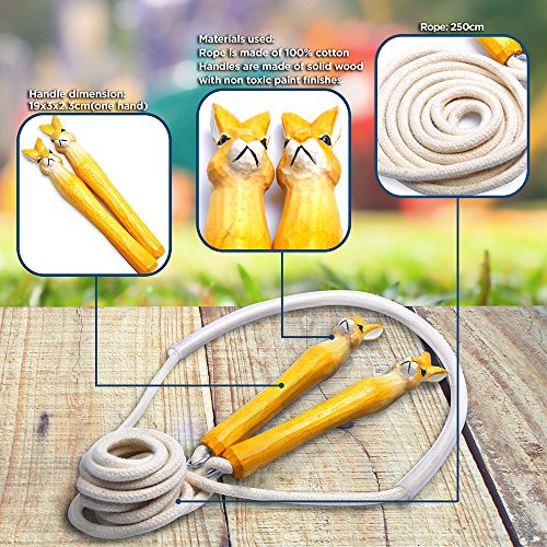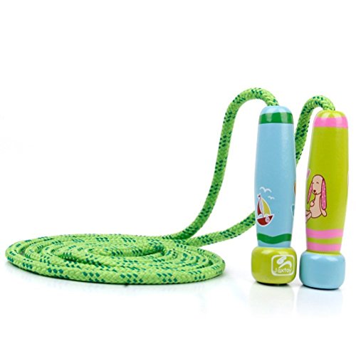 Sinwind Cuerda de saltar para niños, con mango de madera de dibujos...