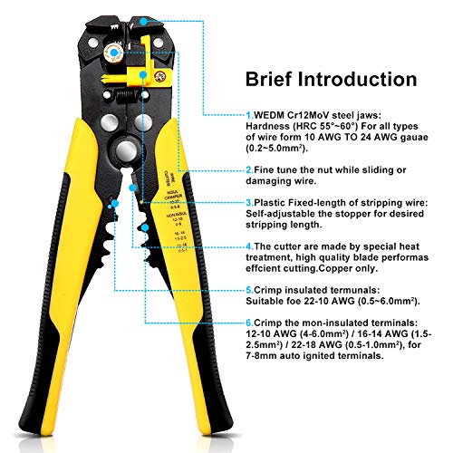 DANIU - Alicates Pelacables Automáticos y Alicates de Corte, incl. Cortador de...