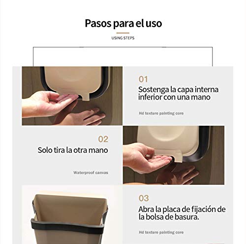 Delgeo Contenedor de Basura Plegable y Fijo para Cocina, Creativo y de Moda, 9L, basurero para automóvil/baño/Dormitorio (marrón-Negro) …