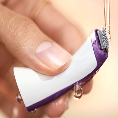 - Depiladora eléctrica mujer inalámbrica con tecnología Wet & Dry (en húmedo y seco) para poder usarla en la bañera o en la ducha para una depilación delicada
