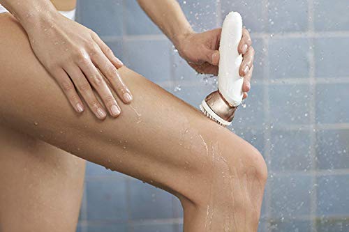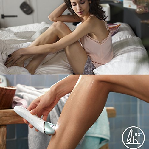- 9 accesorios: lima eléctrica para pies, cabezal de recorte y peine guía, de afeitazo y peine guía, exfoliante, para zonas sensibles,cabezal de contacto óptimo con la piel,funda y cepillo de limpieza
