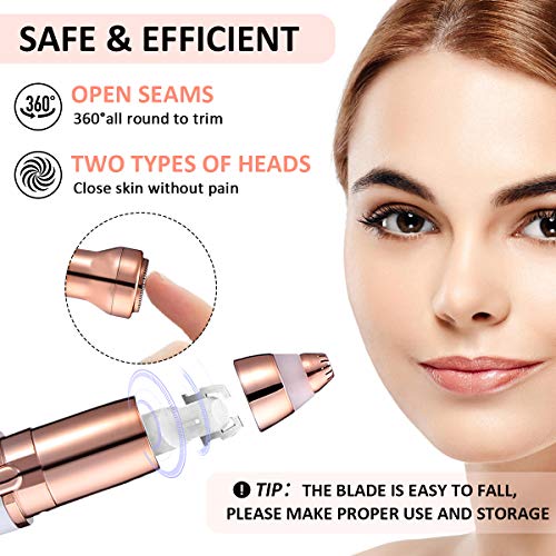 - 【EFICAZ Y SEGURO】Suave para todo tipo de piel. Hecho de material antialérgico, las cuchillas no causan irritación,enrojecimiento y cortes en la piel. El cabezal de corte se puede quitar y lavar y el cepillo de limpieza principal está incluido para una fácil limpieza.No lo use durante mucho tiempo,la cabeza caliente puede afectar su experiencia de belleza.
