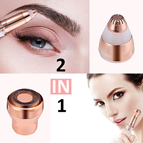 - MODELO: Depiladora facial eléctrica multicolor de elegante diseño de bolsillo Recargable USB con luz LED incorporada. Modelo 2 en 1, con cabezal grande para zonas grandes y cabezal pequeño para zonas finas como cejas, labios, etc.