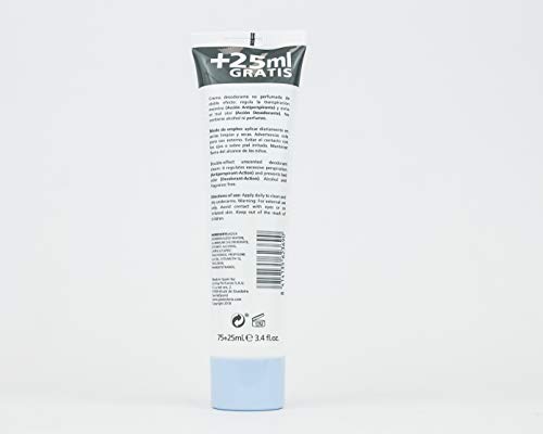 - Fórmula eficaz contra el olor corporal y el exceso de transpiración que ayuda a mantener la piel hidratada y protegida. No contiene alcohol, perfume, ni parabenes.