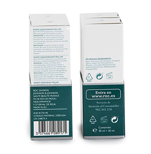 ROC KEOPS - Desodorante Roll On, Piel Normal, 30 ml (x2)