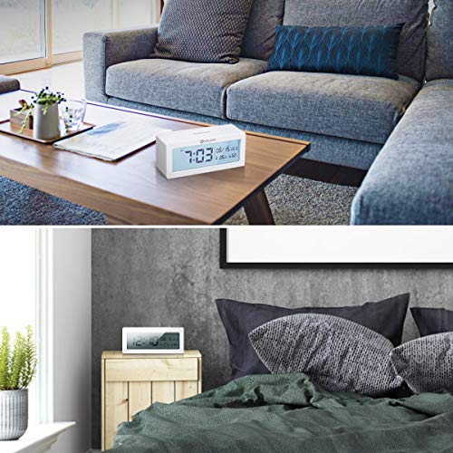 DIGOO Reloj Despertador Digital, LCD Reloj Alarma con Pilas con Monitor de Temperatura y Humedad, Calendario, función de repetición, Reloj de Escritorio del Dormitorio, Regalo para niños Blanco