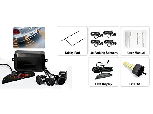 - [Color Múltiple para Seleccionar] Color múltiple para seleccionar (Negro / Rojo / Gris / Blanco / Rojo Fiat / Oro Champaña / Azul / Plata). 4 sensores a prueba de mal tiempo + pantalla LED de distancia. El paquete incluye: 1 * caja de control principal; 1 * Indicador de alerta de sonido; 4 * sensores de estacionamiento; 1 * agujero vio; 1 * cable de alimentación; 2 * etiqueta lateral doble; 1 * Manual de usuario