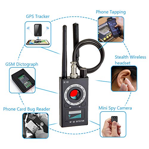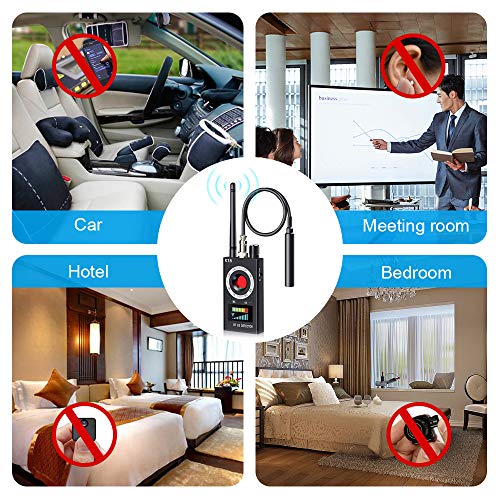 - 【Detección multifuncional】 Detecta de forma profesional y precisa la posición de las cámaras ocultas, los errores de audio y el dispositivo de rastreo GPS en pocos minutos a través de la detección de frecuencia de RF. Puede prevenir eficazmente las escuchas, las fotos sinceras y las filtraciones de privacidad personal. Tenga en cuenta que no lo use en el lugar con mucha gente y ruido.
