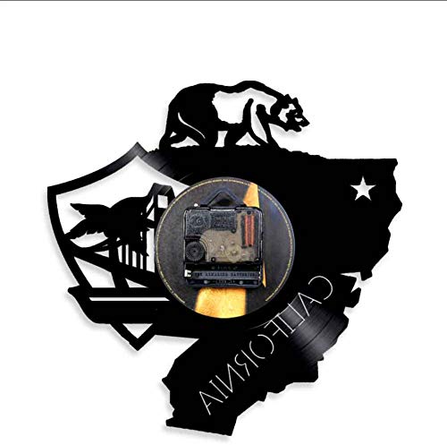 BGNH Etiqueta de la Pared Bandera del Oso de California Oso de Cali Vida Reloj de Pared del Estado de California Disco de Vinilo Pared del Reloj de Pared del Estilo del Reloj de la Vendimia