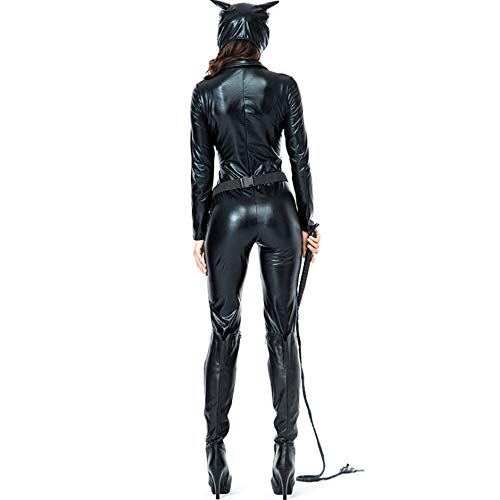 Shihong-G Mujeres Faux Black Leather Cat Body Mono de Halloween Cosplay Dark Knight Rises Disfraz de Catwoman para Adultos