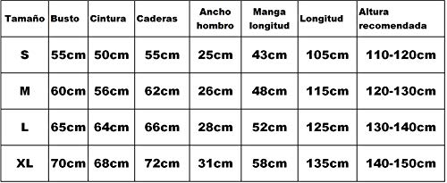 - Para niños de 3 años en adelante. Disponibles para niños Talla S de 3 a 4 años, Talla M de 5 a 7 años y Talla L de 8 a 10 años. Leer la tabla de medidas en las imagenes. Por la seguridad de los niños todos nuestros disfraces son testeados bajo BS EN-71 estandar de seguridad cumpliendo las normativas europeas exigidas.
