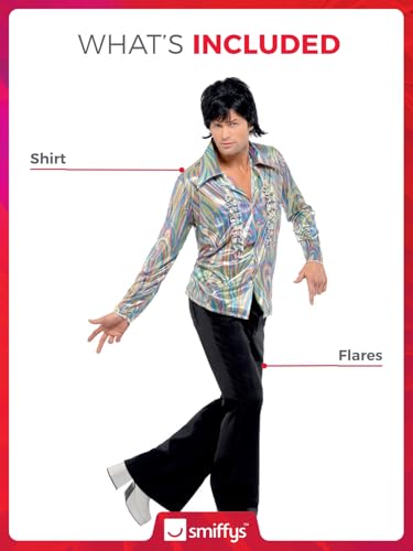 Smiffys-33841L Disfraz Retro de los 70, con Estampado psicodélico, Camisa y Pantalones...