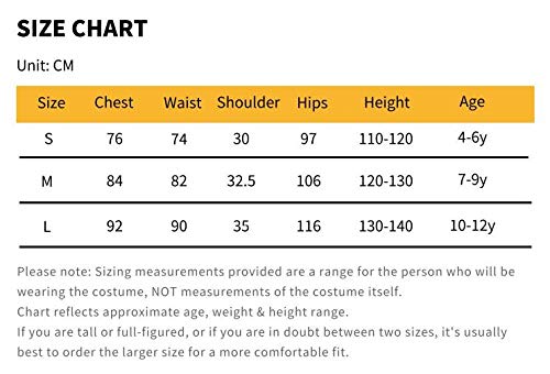 • Tamaño adecuado para niñas: El disfraz está disponible en varios tamaños, para adaptarse a diferentes edades, garantizando que cada niña pueda disfrutar del disfraz con comodidad.