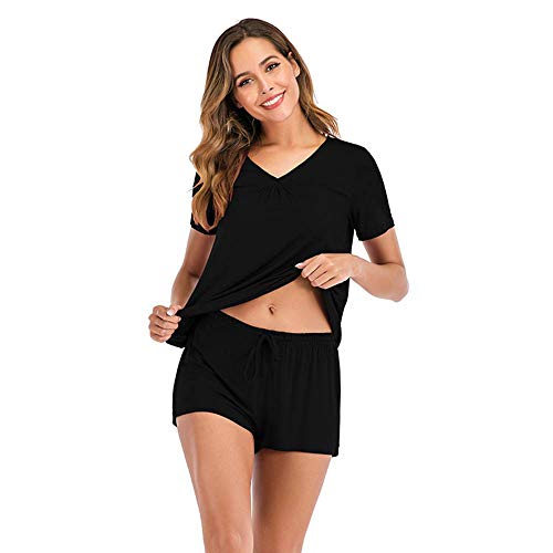 CUYOC Traje De Pijama Modal Pantalones Cortos De Manga Corta con Cuello...