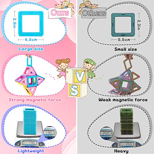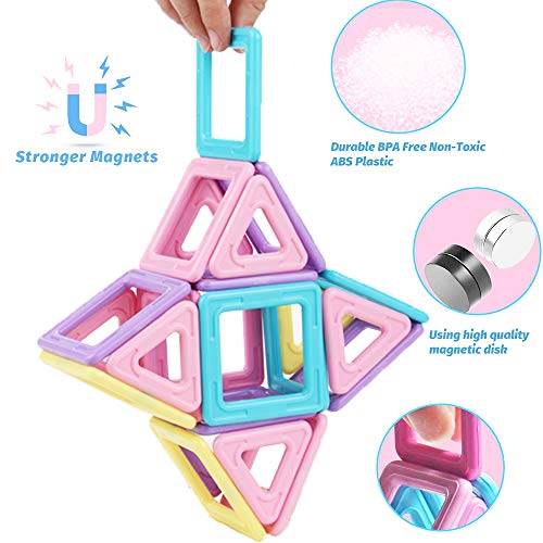 - 【Plástico ABS Seguro No Tóxico】- El bloque magnético está hecho de material ABS no tóxico original de alta calidad, todos los chips de colores del arco iris están tratados por ultrasonidos para tener un mejor sellado y son perfectos para evitar roturas, Diseño de borde redondo sin nitidez, no se preocupe por lastimar las manitas de sus hijos, tenga la seguridad de que su hijo puede jugar Bloques Magnéticos.