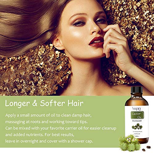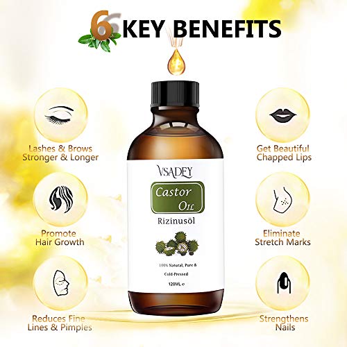 - 100% natural y orgánico: el aceite de castor VSADEY es un tratamiento natural para el cabello seco y quebradizo, el cuero cabelludo seco y la caspa. Está lleno de nutrientes que no solo aumentan la producción de cabello, sino que también hacen que su cabello se vea más brillante y brillante.