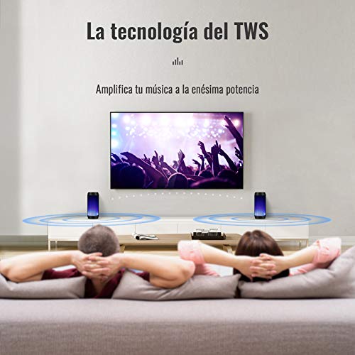 - ♫ Conexión TWS y Efectos Triple-Bajo ♫ Al presionar el botón TWS, se pueden combinar dos altavoces T6 Plus separados logrando un sistema TWS, con hasta 80W de potente sistema estéreo. Y el nuevo ajuste EQ de sonido del T6 Plus te permite disfrutar de tres tipos diferentes de sonido: Vocal, Subwoofer y Bajos profundos 3D.