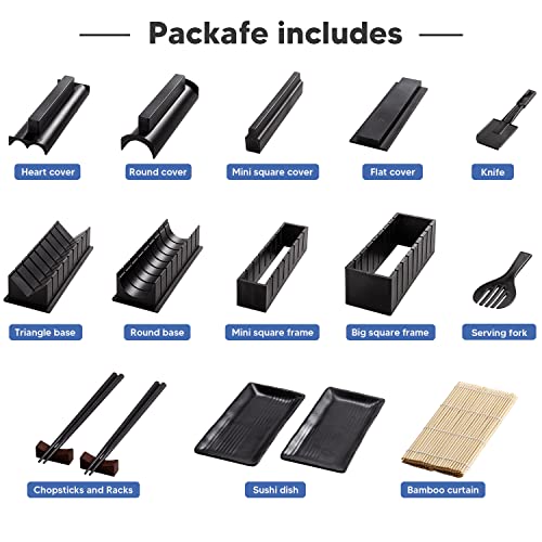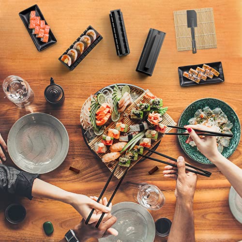 - Conjunto Completo De Kits De Sushi: El paquete de sushi está equipado con las herramientas necesarias, 8 moldes de sushi, 1 almohadilla de sushi, 2 Plato de sushi, 2 pares de palillos, 2 estantes de palillos, 1 cuchara de arroz antiadherente y 1 raspador.