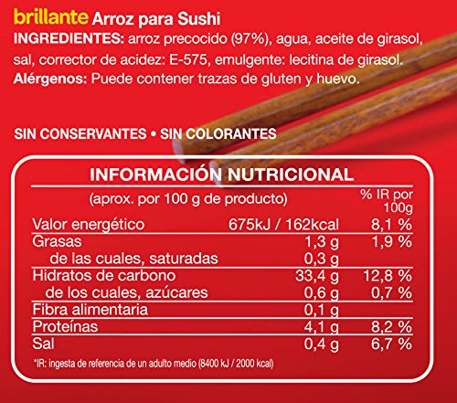 - Variedad de arroz utilizada por los mejores restaurantes de comida japonesa en España; Sin colorantes y sin conservantes