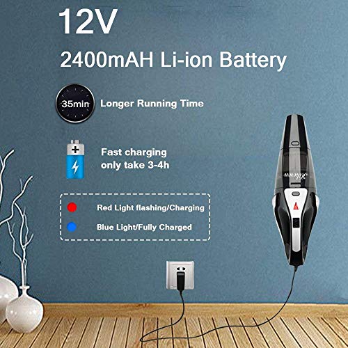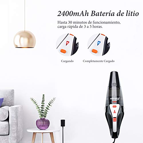 - 【Larga Duración】La aspirador de mano sin cable con capacidad de batería de 2400mAh, funciona 25-30 minutos después de la carga completa, con la tecnología de carga rápida, solo necesita 4-5 horas para cargarse completamente