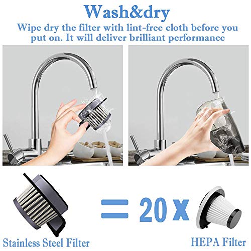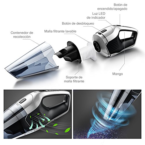 - 【Lavable Filtro HEPA】 La aspirador mano con un filtro HEPA de acero inoxidable que se puede lavar en agua,facil de limpiar y no necesita comprar otros filtros