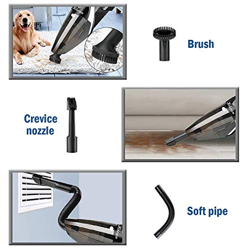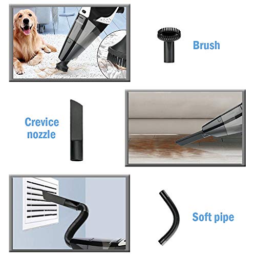 - ACCESORIOS PRÁCTICOS: Viene con 2 filtros y 3 boquillas para limpiar el pelo de mascotas, el agua (150 ml máx.) y los rincones ciegas. Puede satisfacer sus varias necesidades para limpiar la casa y el coche.
