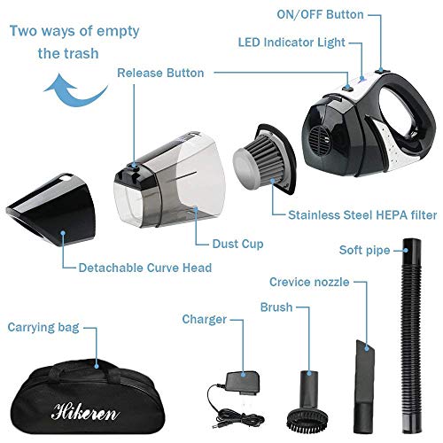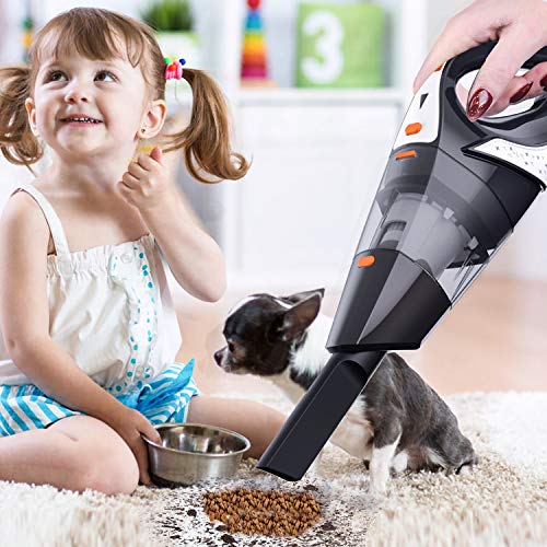 - 【Luces LED】Esta aspiradora de mano con luces LED para iluminar los lugares oscuros,como ricones.Tambien con indicador de carga,sabe mejor bateria de este aspirador.Este es versión mejorada de aspiradora anterior en la tienda,más potente,con luces,más autonomía,más cepilo de mascota