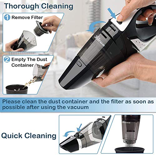 - 【Succión Potente】Nuestra aspiradora de mano proporciona succión potente 5000pa, adecuada para la limpieza rápida diaria, es la mejor opción para la limpieza de coche, casa y oficina.