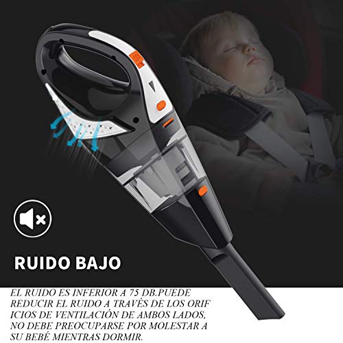 - ★〖Inalámbrico y ligero〗 Nuestro aspirador de coche inalámbrico es ligero y fácil de transportar y usar. Puedes disfrutar plenamente de la libertad de movimiento y limpiar fácilmente cada rincón de tu casa o coche. Con un diseño de reducción de ruido de 71 dB, es un buen ayudante para los accidentes domésticos, regalo ideal para padres y amigos en bodas, noches de fiesta y cumpleaños.