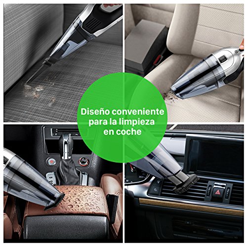 - La aspiradora de mano ha Succión Potente 6500 Pa / 100W, puede limpiar piel de mascota, el polvo, las migas, el moho y los líquidos derramados en segundos.Es una gran ayuda para la limpieza de coche, oficinas y casa.