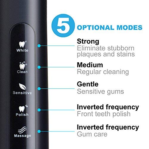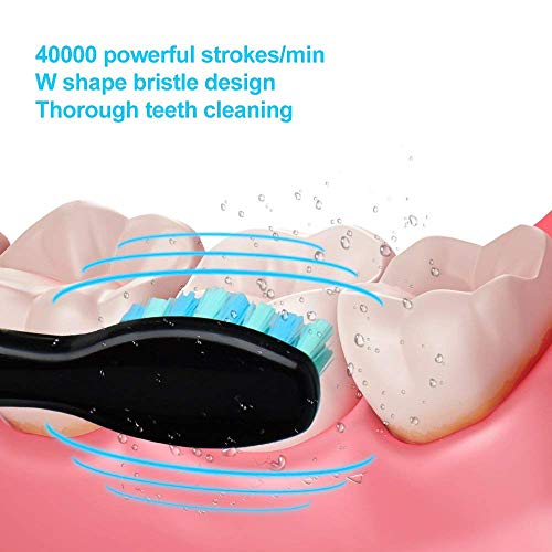 - PODEROSA LIMPIEZA ULTRASONICA : Cepillos de dientes con hasta 40.000 vibraciones por minuto; Remueve hasta el 100% de chapa en más dentro de una semana y mejora la salud de las encías en 2 semanas.Diseño único de cerdas onduladas dentadas por una limpieza completa de la encía y los dientes topografía que es difícil que alcanzar.