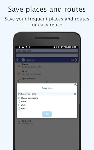 - Save places as Home, Work or any custom name