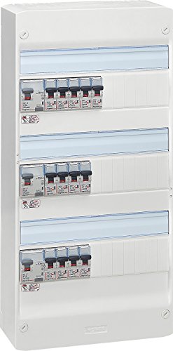 - Composición: 3 inters coeficientes (1 x 40 A, 30 mA – Tipo A/2 x 63 A – 30 mA – Tipo AC) y 13 interruptores automáticos (1 x 32 A/4 x 20 A/4 x 16 A/3 x 10 A/1 x 2 A) y 20 módulos libres.