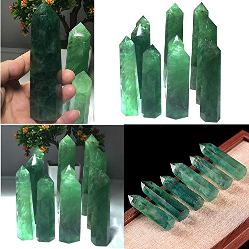 Jannyshop Fluorita Columna Cristalina Verde Natural Columna de Cristal Adorno Cuarzo Cristal...