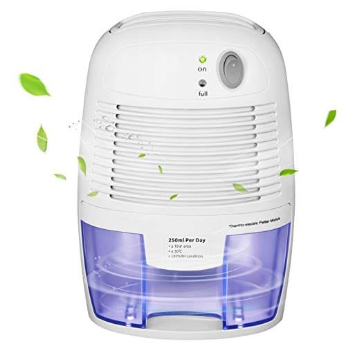 - [Elimina Humedad Eficientemente] Este mini deshumidificador venido con 500ml de almacenamiento de tanque de agua, es capaz de deshumidificar hasta 250mL diariamente y eliminar mucha humedad rápidamente.