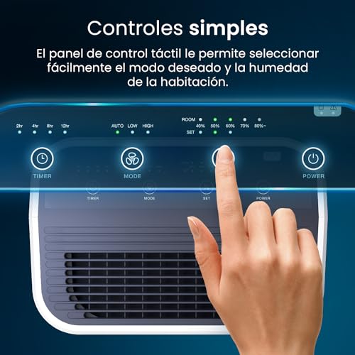 - Regulación las 24 h para un uso con total tranquilidad con programa o inicio retardado de 1 a 24 h; configuración de tasa de humedad del 20% al 100%