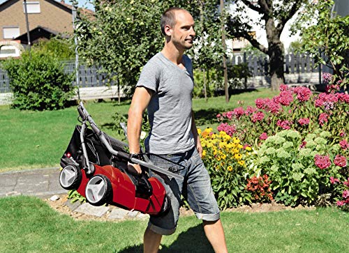 - Carcasa robusta de metal con recubrimiento de polvo y ruedas de gran superficie aptas para el césped