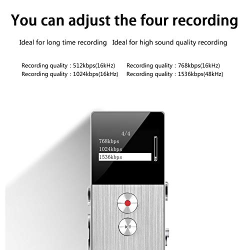 - 【Excelente calidad de grabación】 Grabación clara con resolución de voz de 1536Kbps, dos micrófonos con reducción de ruido dinámica, tiene una velocidad de bits diferente, una velocidad de bits más alta, una calidad de grabación más alta. puede disfrutar de grabaciones cristalinas. También se puede utilizar como un reproductor de MP3.