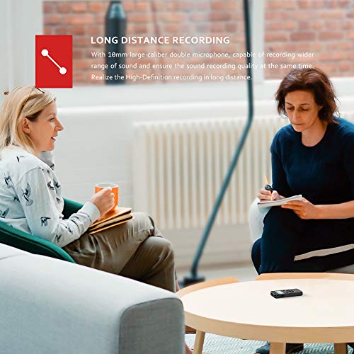 - 【Grabación activada por voz & Grabación de larga distancia】 Equipado con dos micrófonos de grabación profesionales, puede grabar con claridad. Con la función de detección automática de voz, la grabadora comenzará automáticamente a grabar cuando se detecte sonido durante la grabación. Cuando nada ha sucedido, se encuentra en el estado de espera, lo que puede ahorrar tiempo de grabación y reducir el desperdicio de capacidad de grabación y consumo de energía.