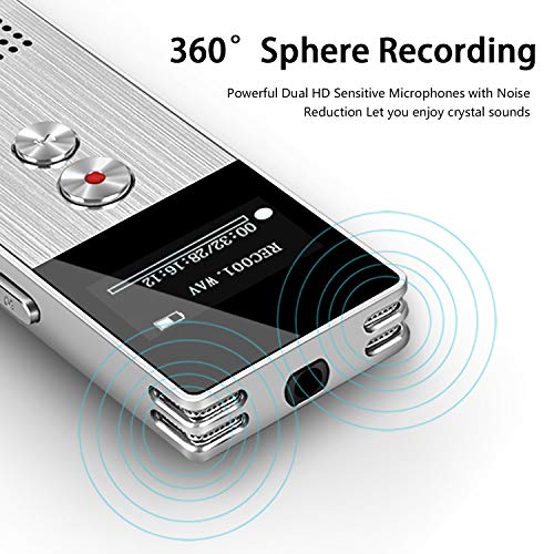 - Alta Calidad & Reducción de ruido profesional -Puede grabar 1536 kbps de audio de alta calidad con micrófono duradero. Grabación continua durante 72 horas. IC integrado inteligente de reducción de ruido de audio profesional y restaurador de voz, para que pueda obtener grabaciones nítidas. También se puede utilizar como reproductor de MP3 y como almacenamiento de archivos siendo compatible con Mac y PC. Soporta reproducción de WAV y MP3.