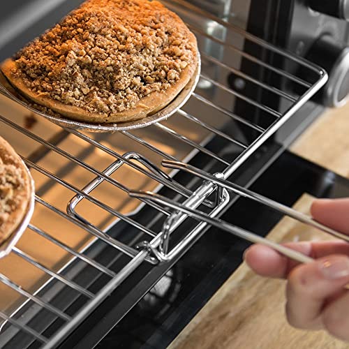 - Incluye bandeja para hornear, parrilla, mango con pinza para extraer los accesorios y piedra para pizza; equipado con una bandeja recogemigas para facilitar la limpieza